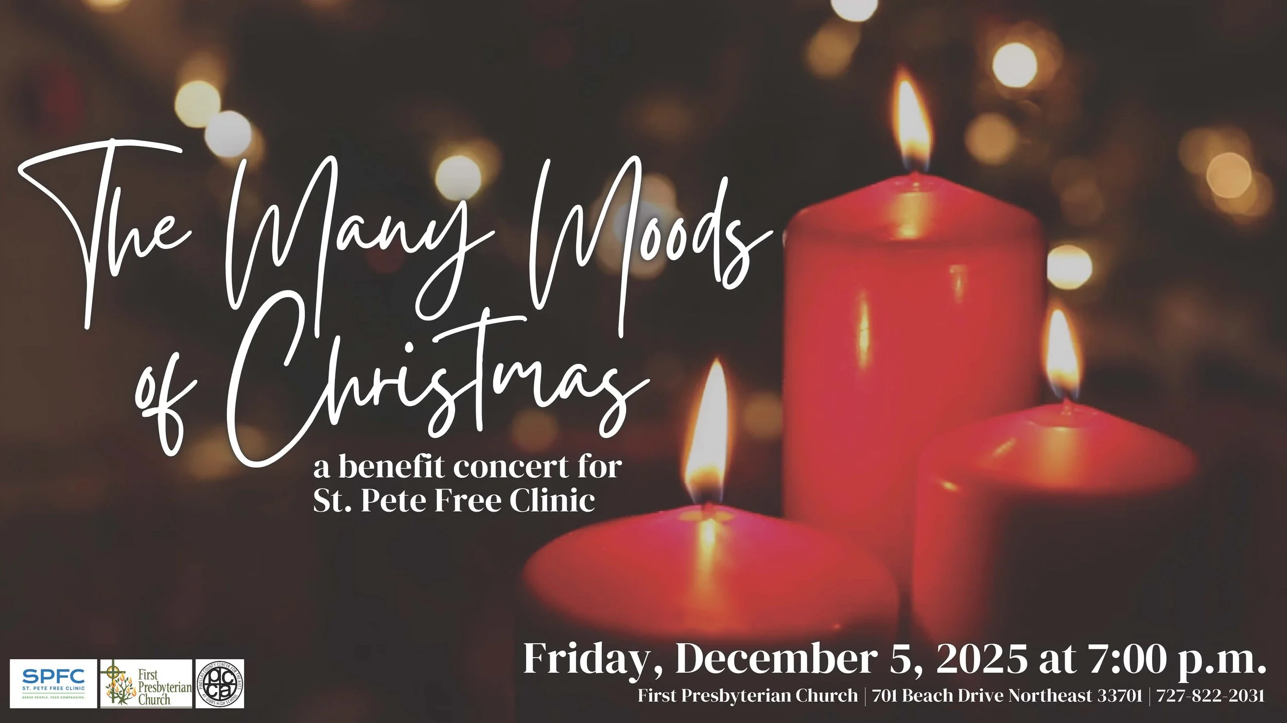 Join us for exciting and heartwarming Christmas music by candlelight in this beloved annual performance. Musicians of all ages collaborate to help support our community through St. Pete Free Clinic. If you would like to donate directly online, you can click HERE.